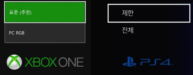 엑스박스와 플스를 TV에 연결하였을때에는 표준과 제한으로